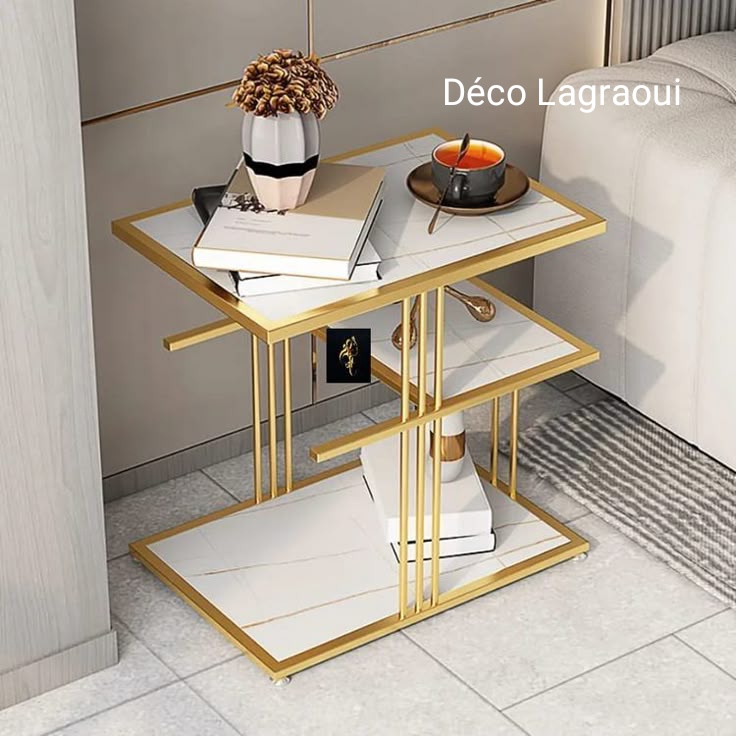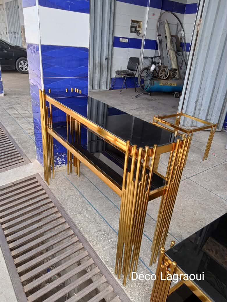 Table en inox doré à vendre, en très bon état. Structure solide et design modern...