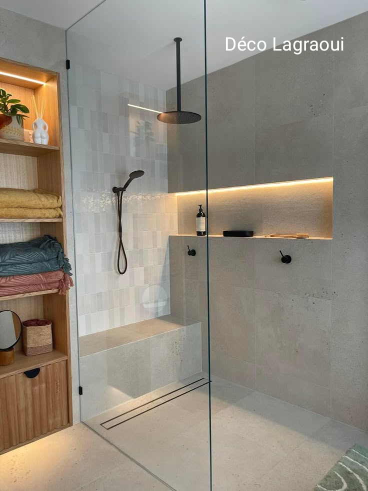Salle de bain moderne au design élégant, combinant verre trempé et inox de haute...