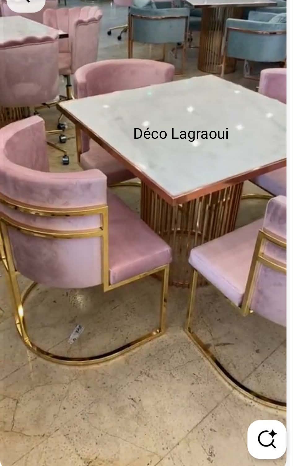 Ensemble table et chaises en inox doré à vendre, en très bon état. Design modern...