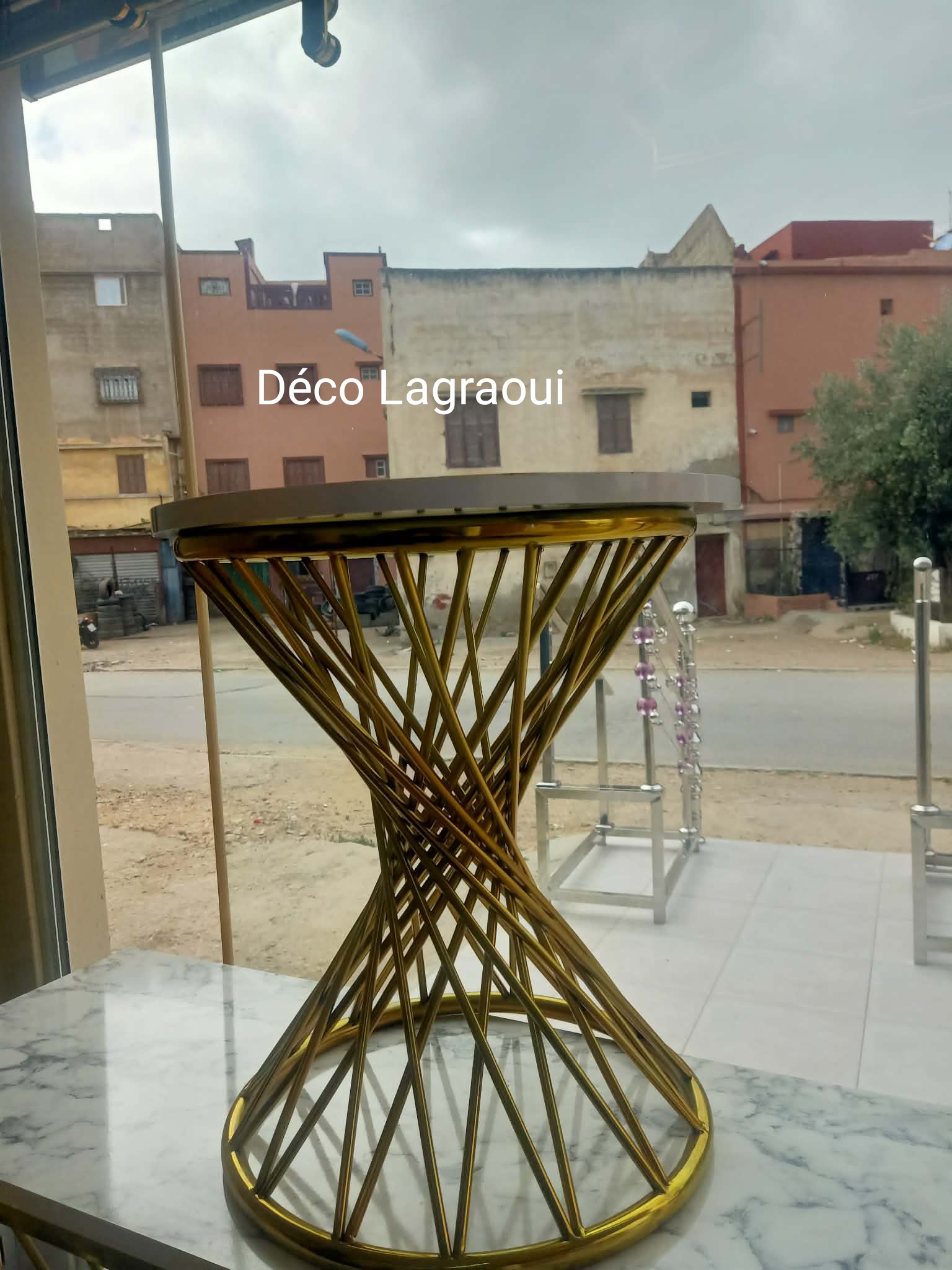 Table en inox doré à vendre, en très bon état. Structure solide et design modern...
